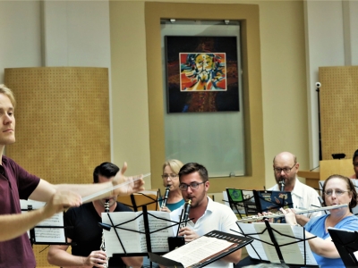 The FCWS touring group also presented a “Bon Voyage” concert at the Friday Musicale in Jacksonville on June 15 to an enthusiastic, standing-room only audience. The touring program included music of Beethoven, Pezel, Telemann and the Weber Concertino, featuring clarinetist Dillon Acey. The ensemble also performed Americana selections by Stephen Foster, Scott Joplin and John Philip Sousa.