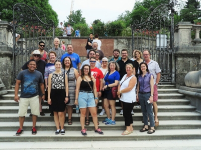 21, JunFrom June 21-30, the First Coast Wind Symphony embarked on its first international tour! The group visited both Salzburg and Vienna, Austria, the cities of Haydn, Mozart and Beethoven, and performed three concerts in historic venues. Highlights of the tour included St. Andrä Church, the Salzburg fortress, Mozarthaus, Haydnhaus, Hallein Salt Mine, Lake Region, Schönbrunn Palace, St. Stephen’s Cathedral, the Vienna Musikverein and Esterhazy Palace. The touring ensemble also performed in a masterclass conducted by Vienna Philharmonic member, Mr. Christoph Koncz.